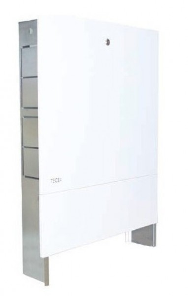 Встраиваемый шкаф TECE 77351022 для размещения коллекторной группы или другого инженерного оборудования. Металл оцинкованный, внешняя сторона покрыта порошковой краской. Расчет количества контуров идет из стандартного расстояния между выходами коллектора 50 мм + шаровые краны для подключения коллектора. При использовании смесительной группы теплых полов необходимо уточнять требуемый размер коллекторного шкафа.