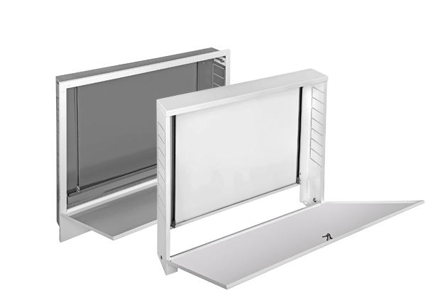 – в боковых стенках корпуса шкафа выполнена перфорация, сегменты которой удаляются в любом удобном месте для подсоединения трубопроводов
